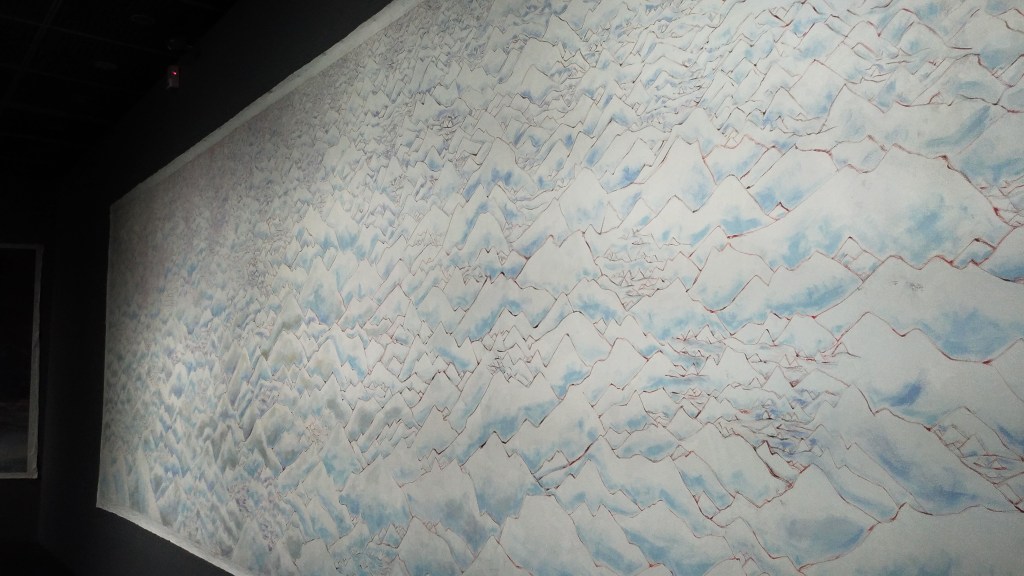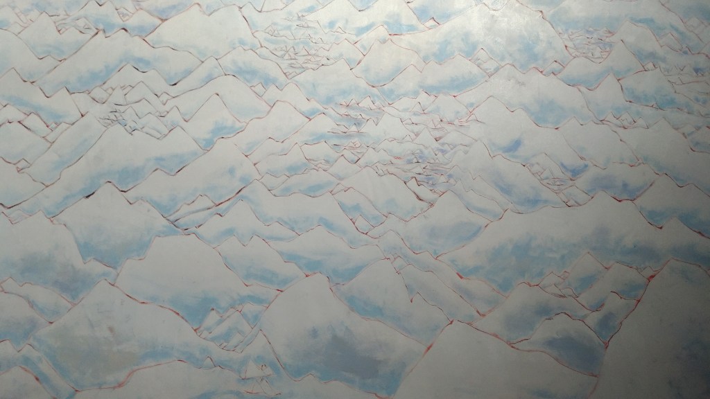 MoCA has one huge room on the second floor. They had 4 massive peices on display here. I love the way she represents nature. Her work is somewhat cleaner, simplified, and more perfect than real nature, but it still holds a strong feeling of what she is trying to represent. The white and blue mountain ranges below were so fresh; it really took me back to alpine snowboarding in the Alps.