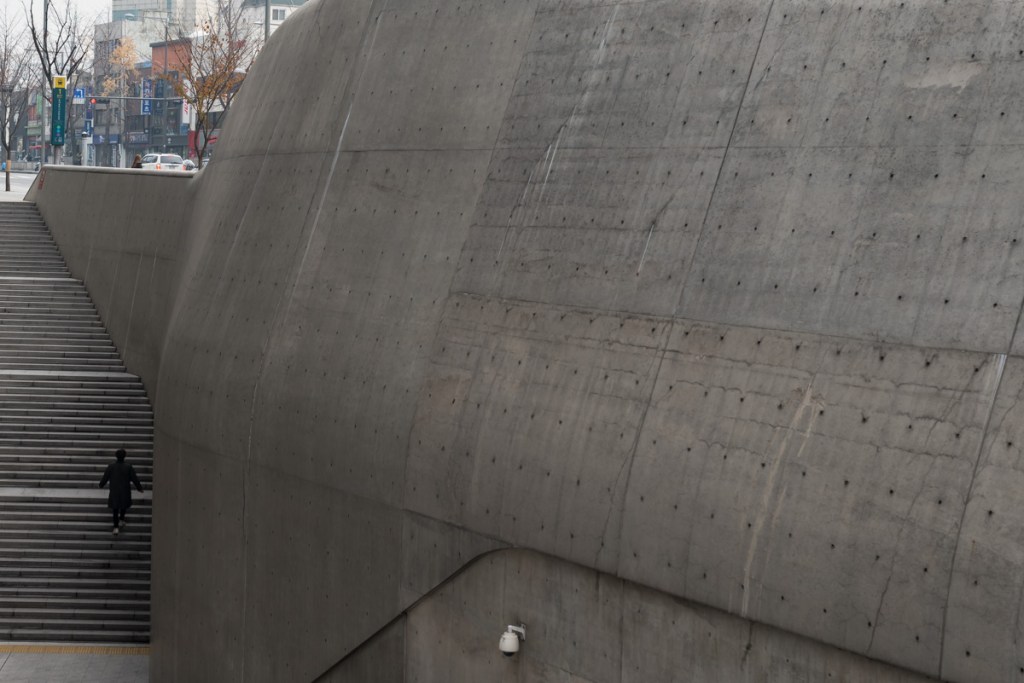 There is relatively modern design plaza in the centre of Seoul. I decided to take a few photographs as the architecture is quite unusual.