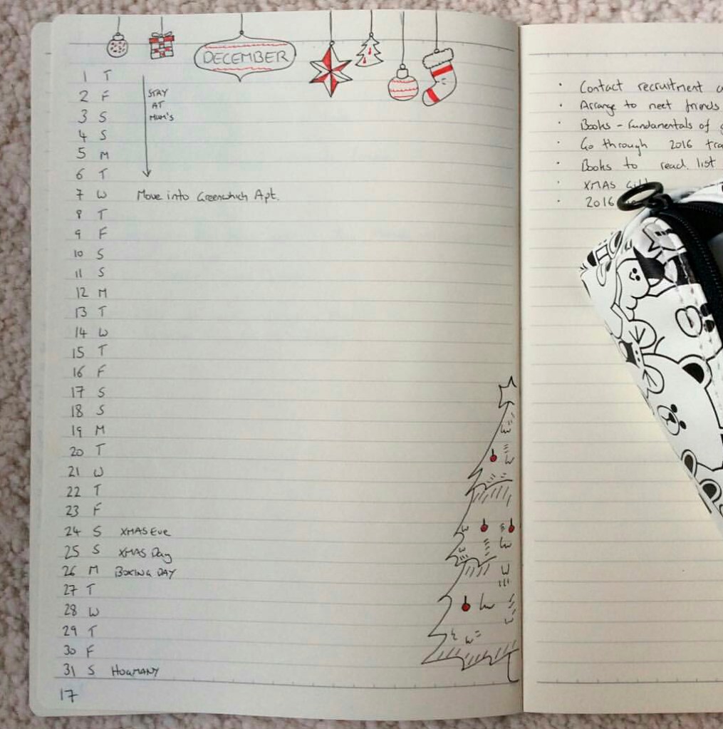 Inspired by the bullet journaling community I’ve started to organise my notebook a bit better. Here is the December planning layout with a little fun XMAS decoration!