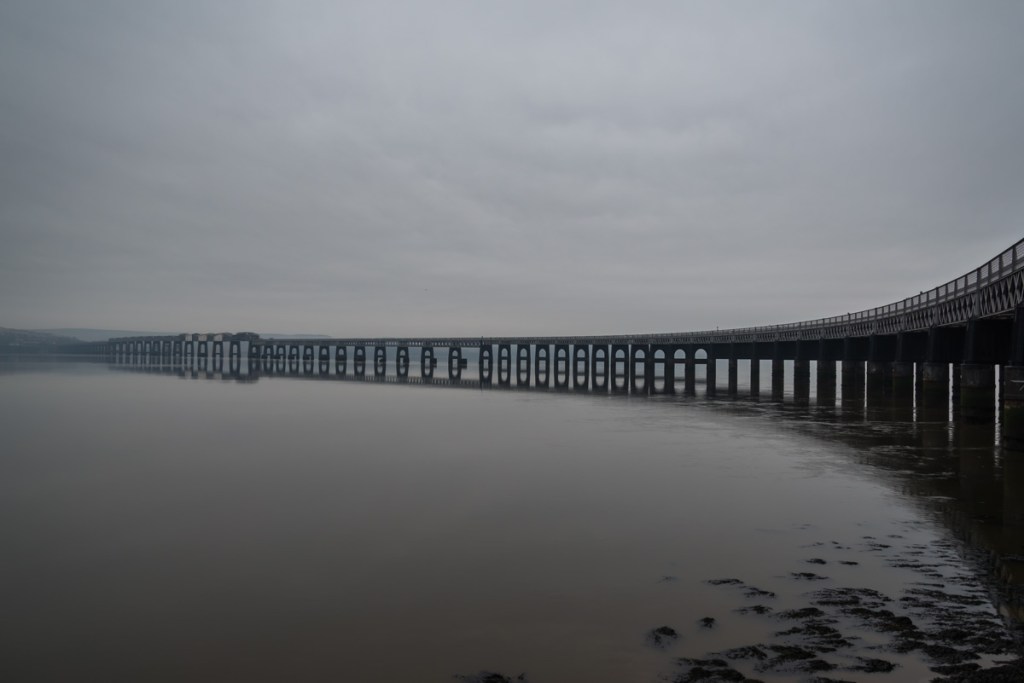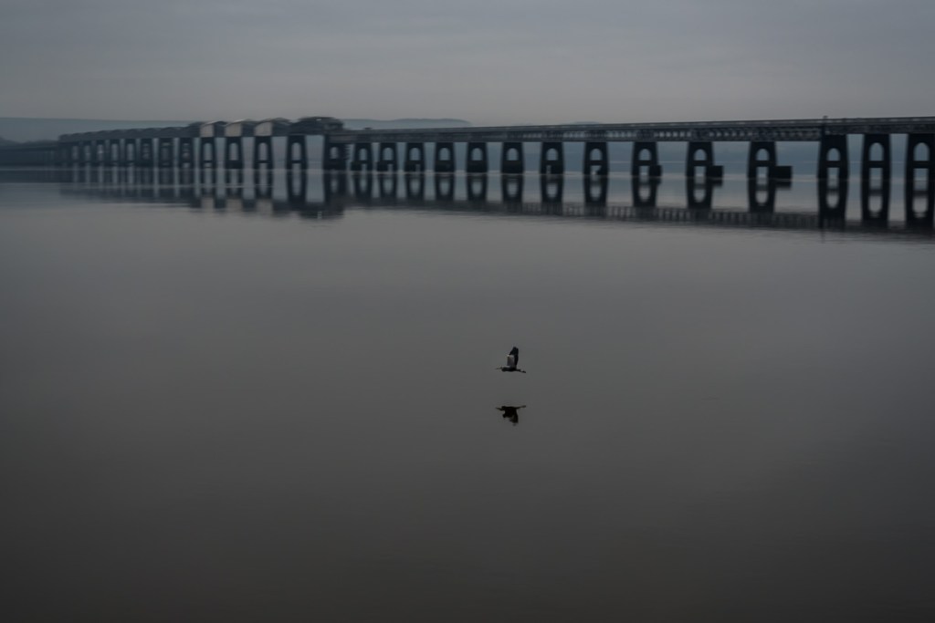 It’s been on my mind to take a river / bridge shot in the fog for quite some time. I drove down to the River Tay at Dundee just after lunch. The fog wasn’t really sitting on the river, but it was visible in the distance. Between that and the complex shades of grey of they sky and the very still river it was really lovely, but freezing!