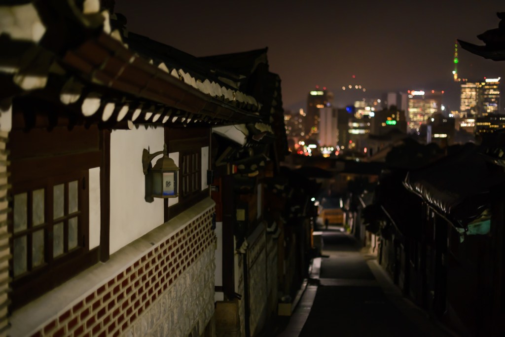 Bukchon can be packed with tourists during the day, but is quiet a night. Let us take a look at some pictures: