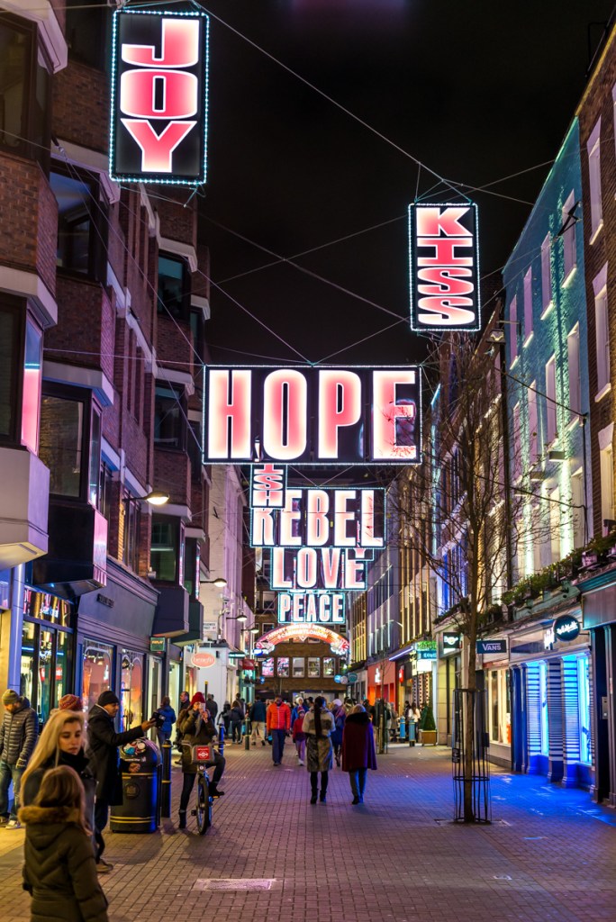 I would say that this years Regent Street decorations are much nicer than last years. The same goes for Seven Dials. I like the messages on the signs on Carnaby Street, but I think last years spectacular decorations were nicer.