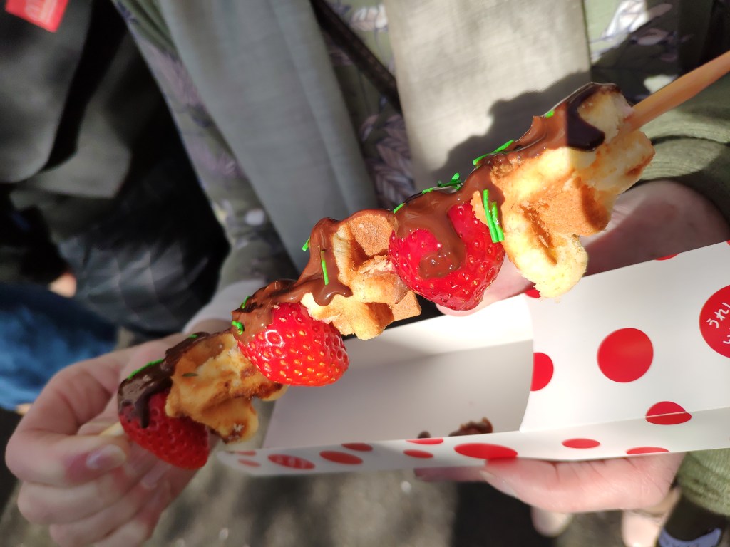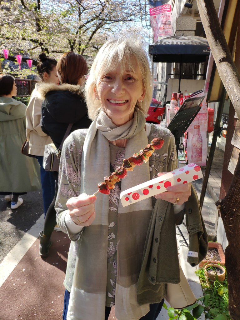 We had a walk along the riverside. The riverside in Naka Meguro is one of the best spots in Tokyo to enjoy Hanami; Cherry Blossom viewing. There are small stalls and stands set up along the side of the street selling snacks and drinks. We indulged in some chocolate strawberries!