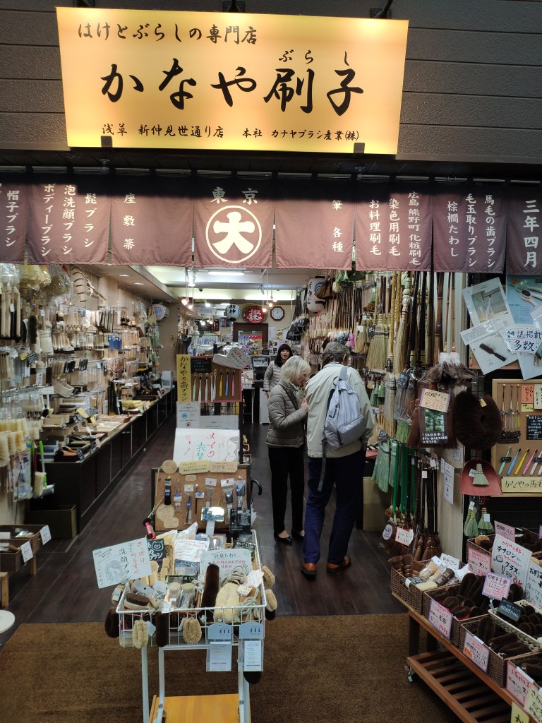 There are a few covered streets and alleys in Asakusa with a good variety of shops. Alistair spotted a specialist brush shop; kanaya brush (かなや刷子), and purchased a horsehair brush. I think this was the most excited I saw them! I should have planned a tour of craft household item stores!