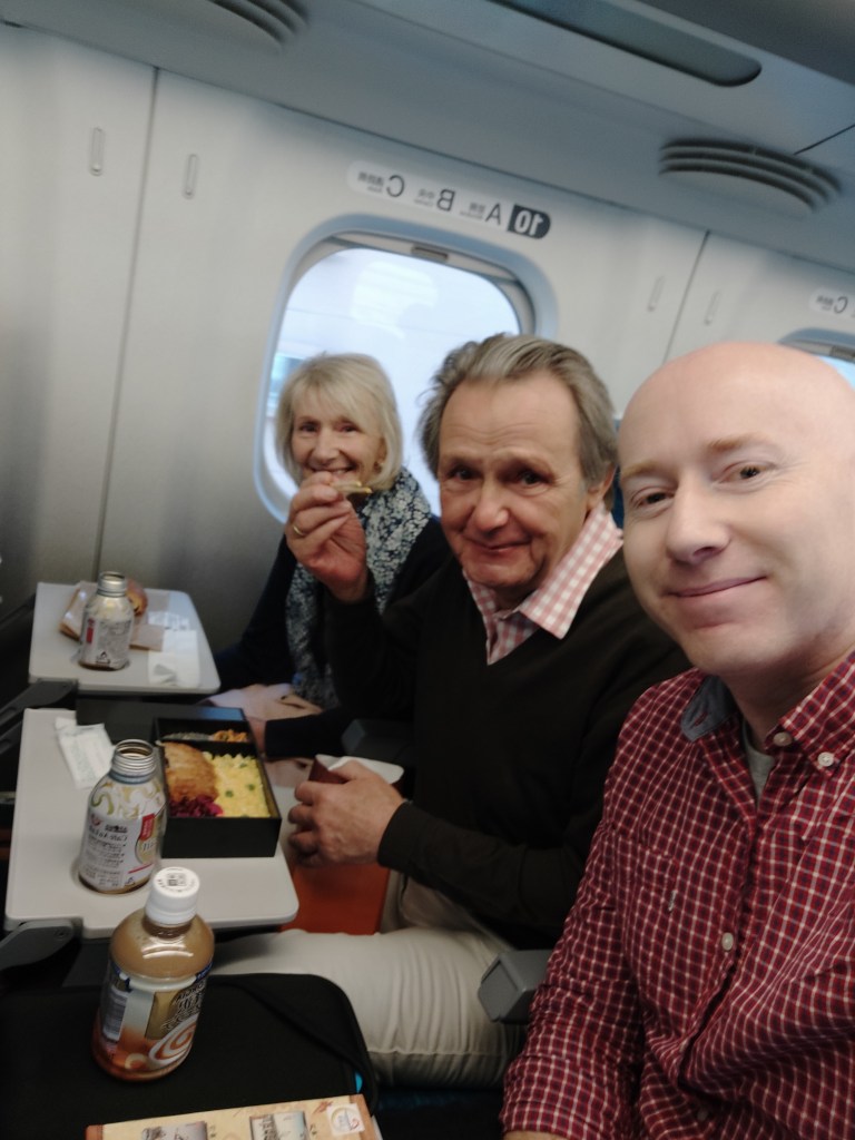 I was keen on buying us all bento boxes for the Shinkansen to Kyoto. I was keen on buying us all bento boxes for the Shinkansen to Kyoto. It’s a Japanese tradition to buy a bento and eat it on the train. I think Mum and Alistair were more keen on a Sandwich though!