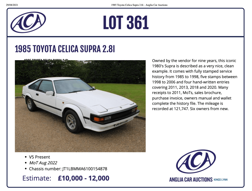 From from Anglia Car Auctions on 29/08/2021 for 12,960 plus transportation costs etc.